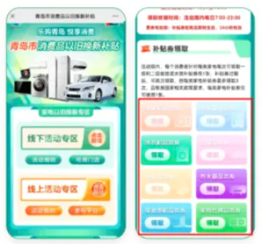 進入活動頁面,點擊“線上活動專區”按鈕,然后可選擇8類家電品類進行領取。