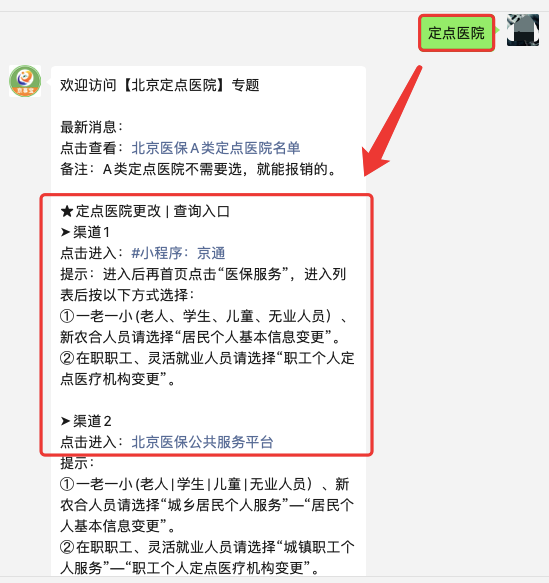 溫馨提示:大家也可以關注【大京事】微信公眾號,回復關鍵詞“定點醫院”即可直接查找到變更入口、操作指南等。