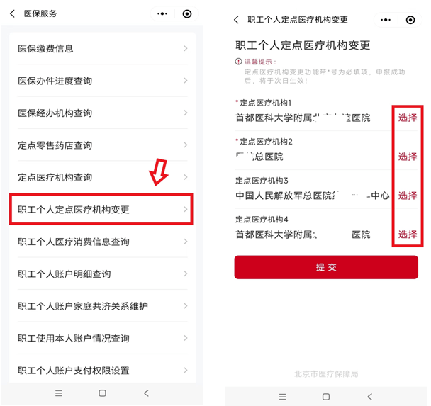 方式一、通過“醫保北京”官微點擊菜單“個人定點查詢修改”即可開始操作。